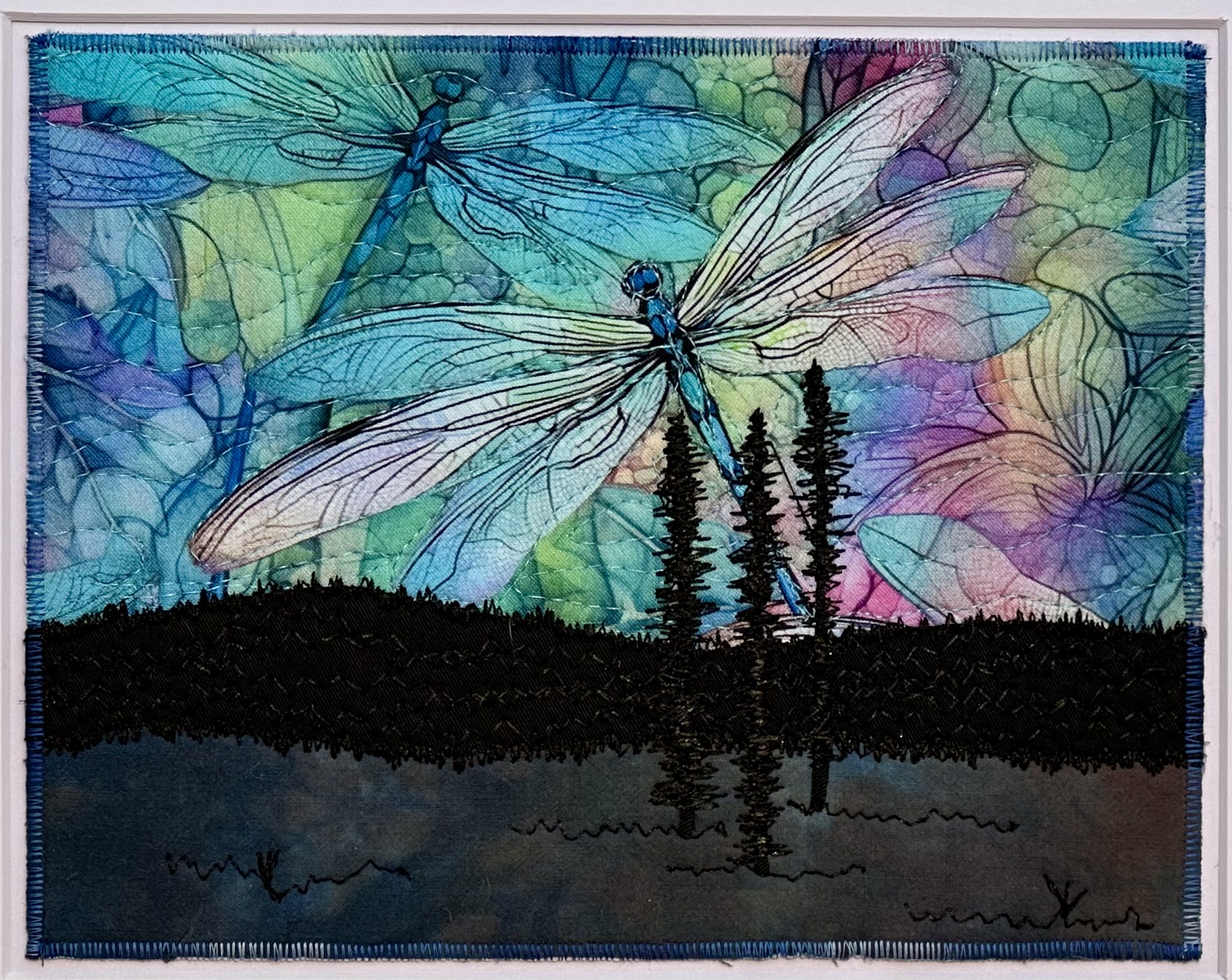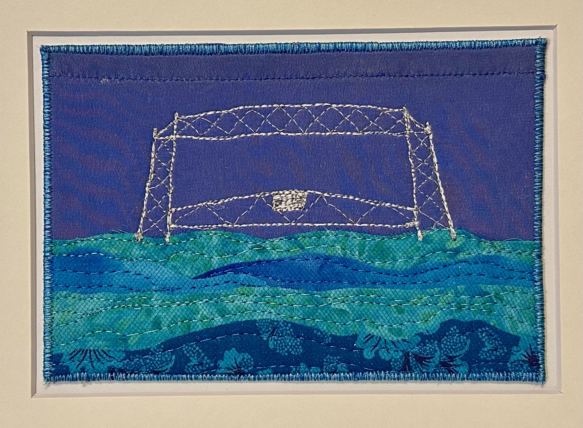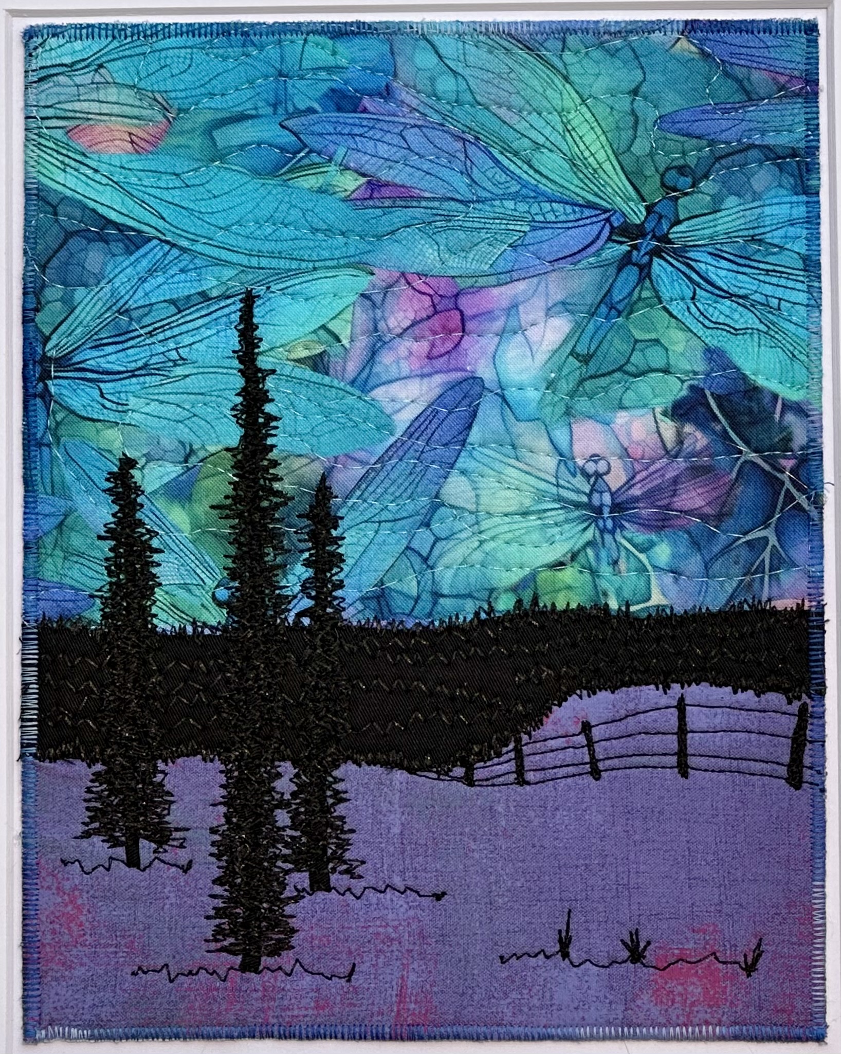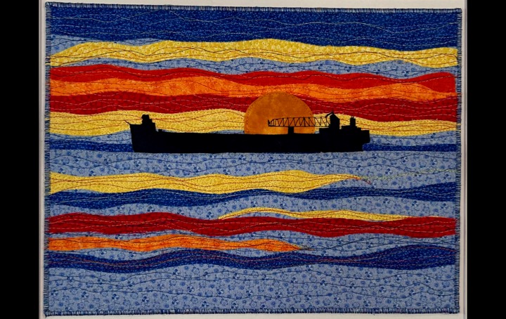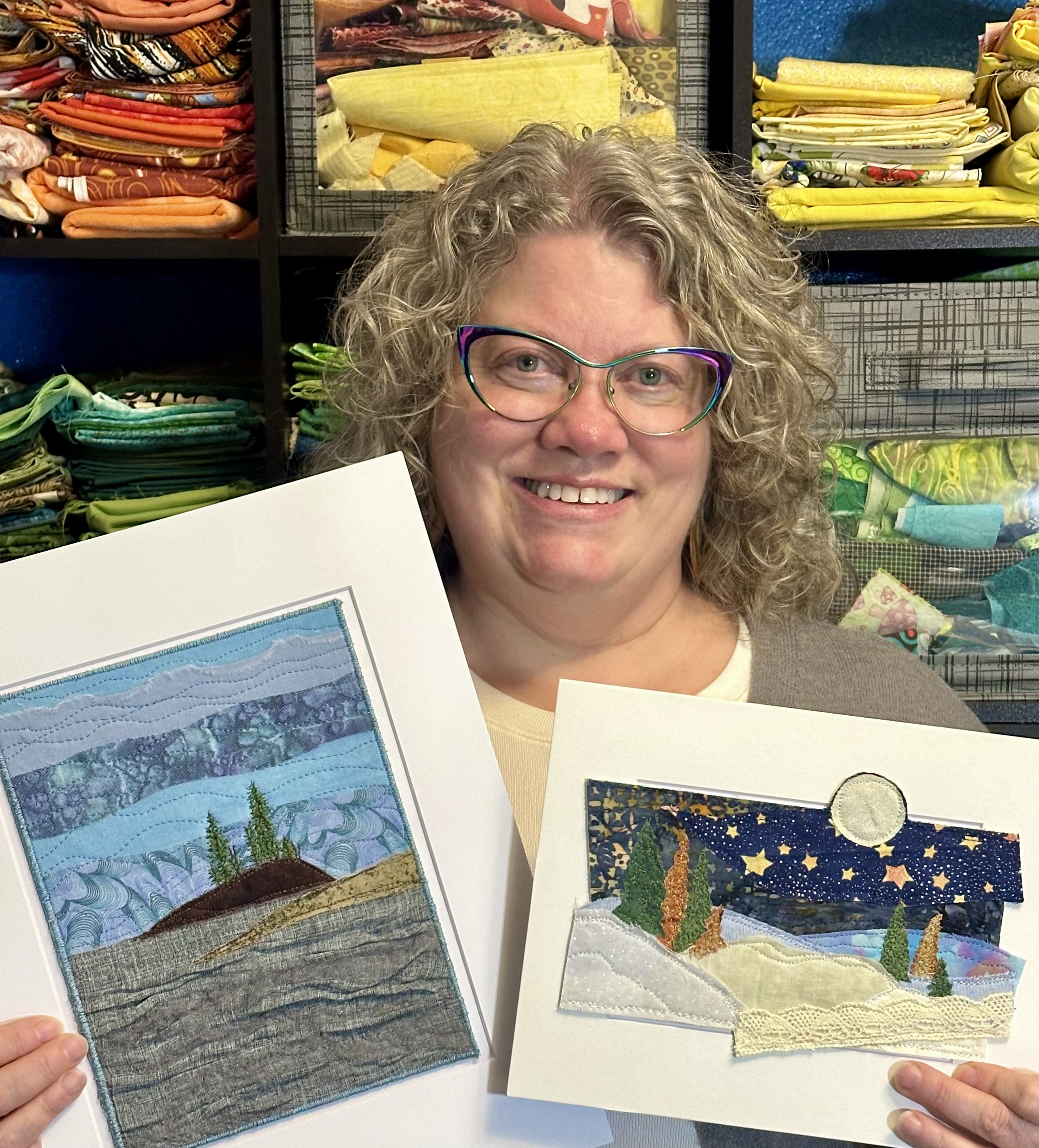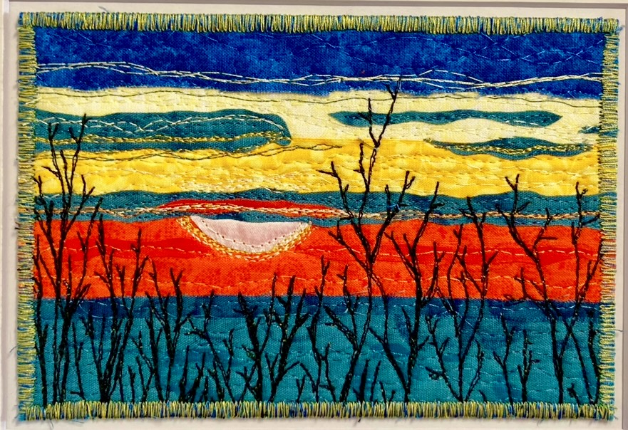 I am a part-time textile artist in Duluth, Minnesota. I’ve been sewing something or other for over 30 years. I can follow a pattern, or make my own pattern, but most often I prefer to do whatever I want and just wing it! My preference is to use as much repurposed materials as I can—through a small network of seamstresses who pass on their scraps, a huge stack of denim jeans to repurpose & recycle, and thrifting for other fabrics. My other hobby is hiking in the natural beauty of our Minnesota North Shore and surrounding areas. These two interests combine in my art as I reimagine North Shore scenery in layers of fabric and thread. I see beauty in textures everywhere and hope you see our North Shore in a new, exciting way through my work!